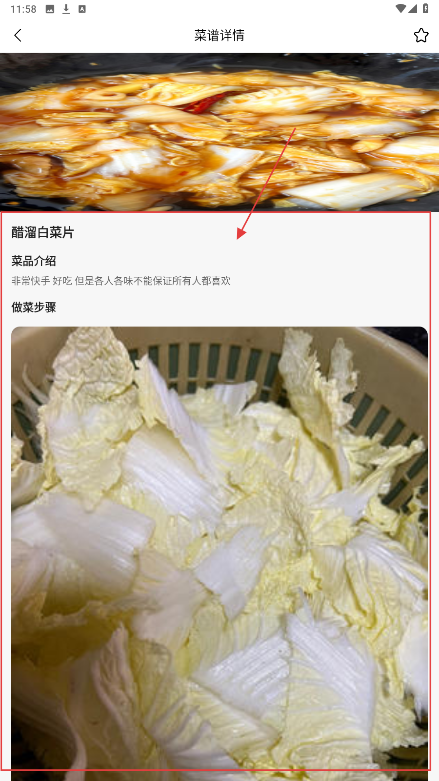 4、查看【醋溜白菜片】详情,依据介绍和步骤,准备食材跟做。