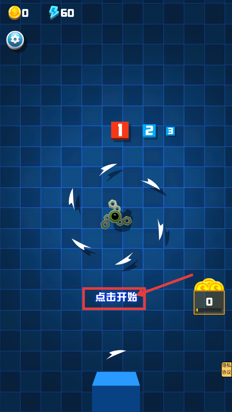 1、初始界面点击【点击开始】,进入阶段1,准备操控陀螺开启挑战。