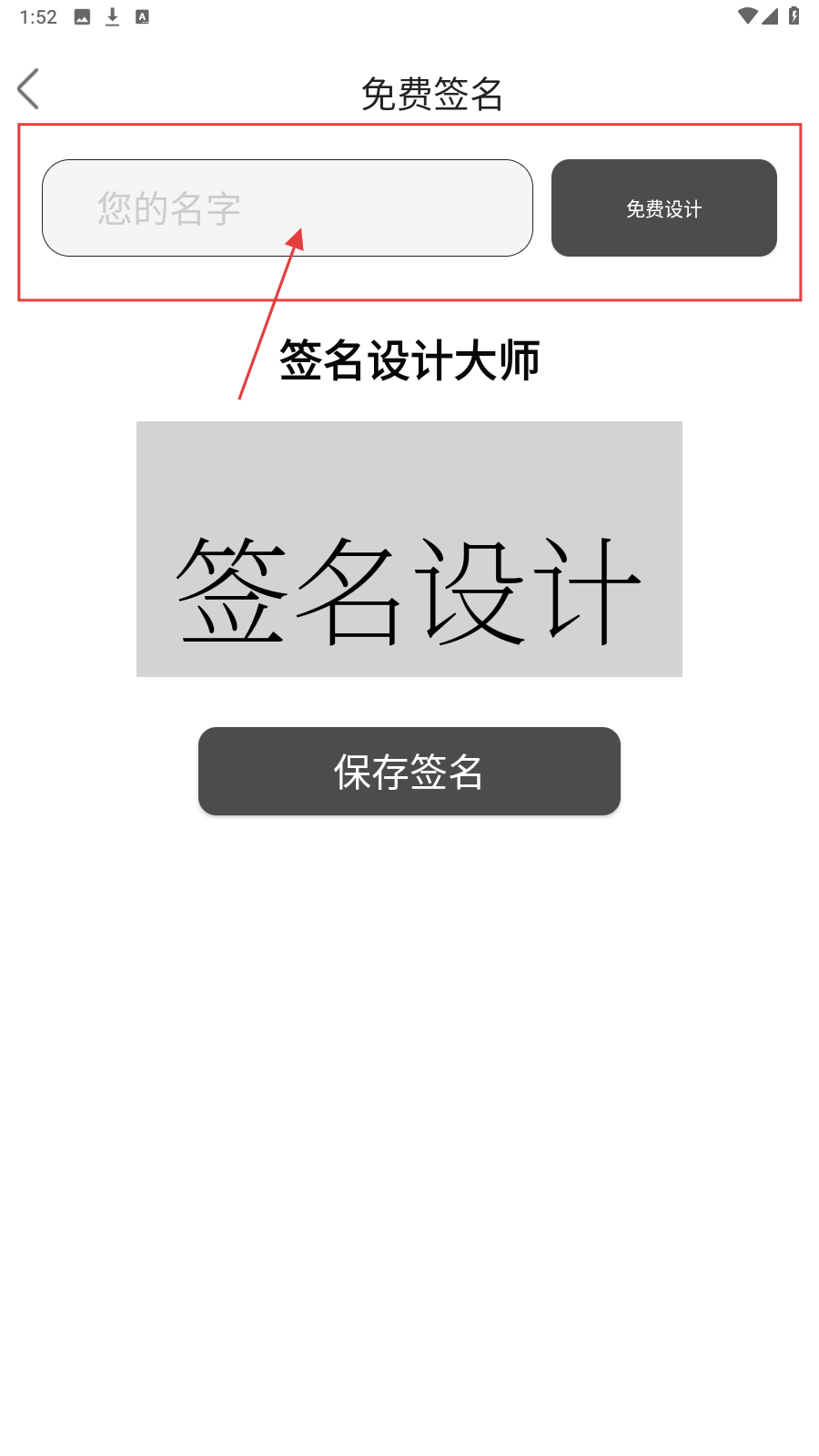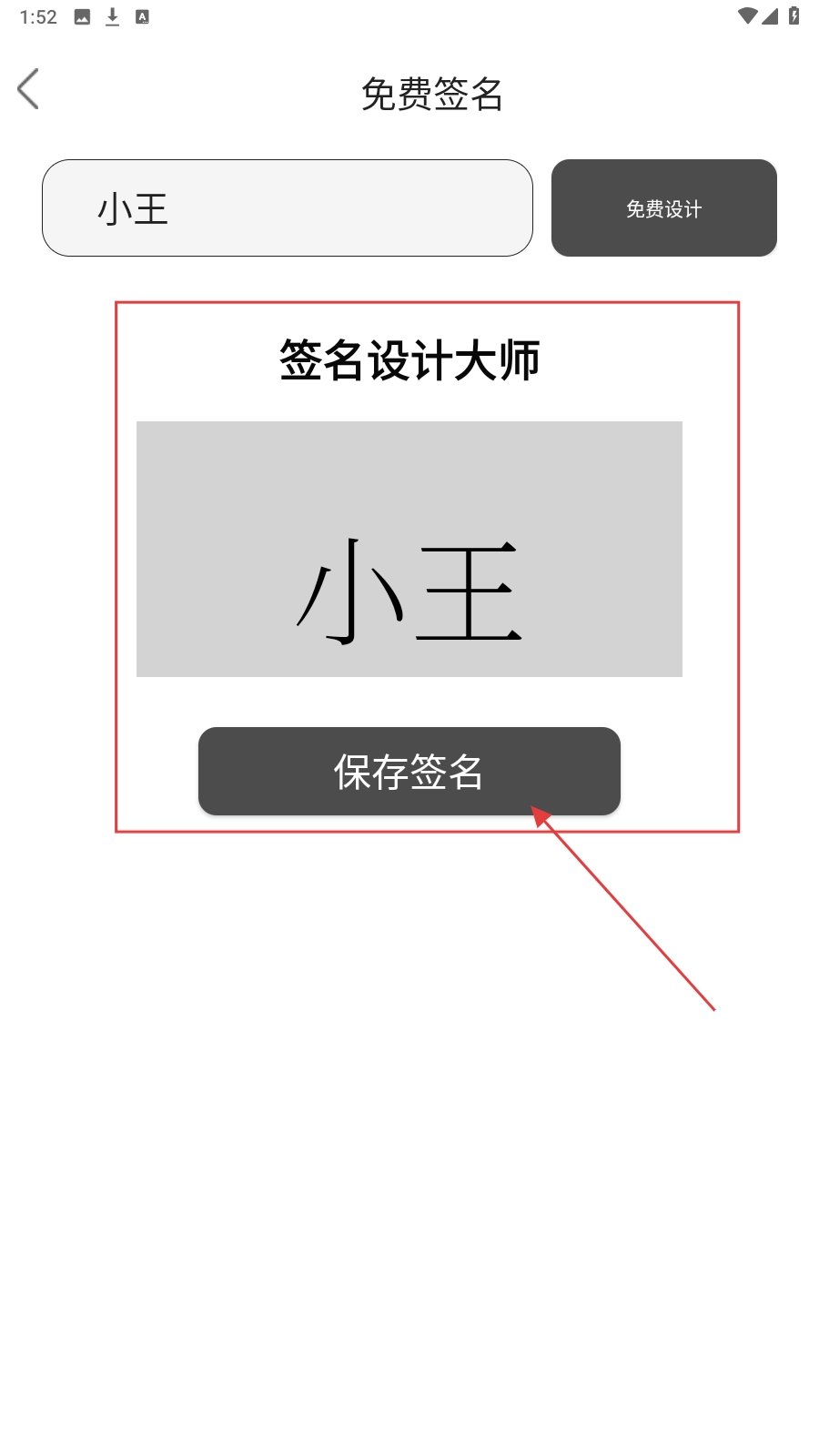 4、输入名字后点【免费设计】,生成后点【保存签名】留存。