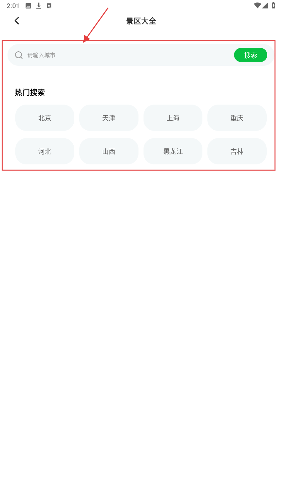 2、在【景区大全】搜索栏,输入城市名,像热门的【北京】【上海】等,快速找目标景区。