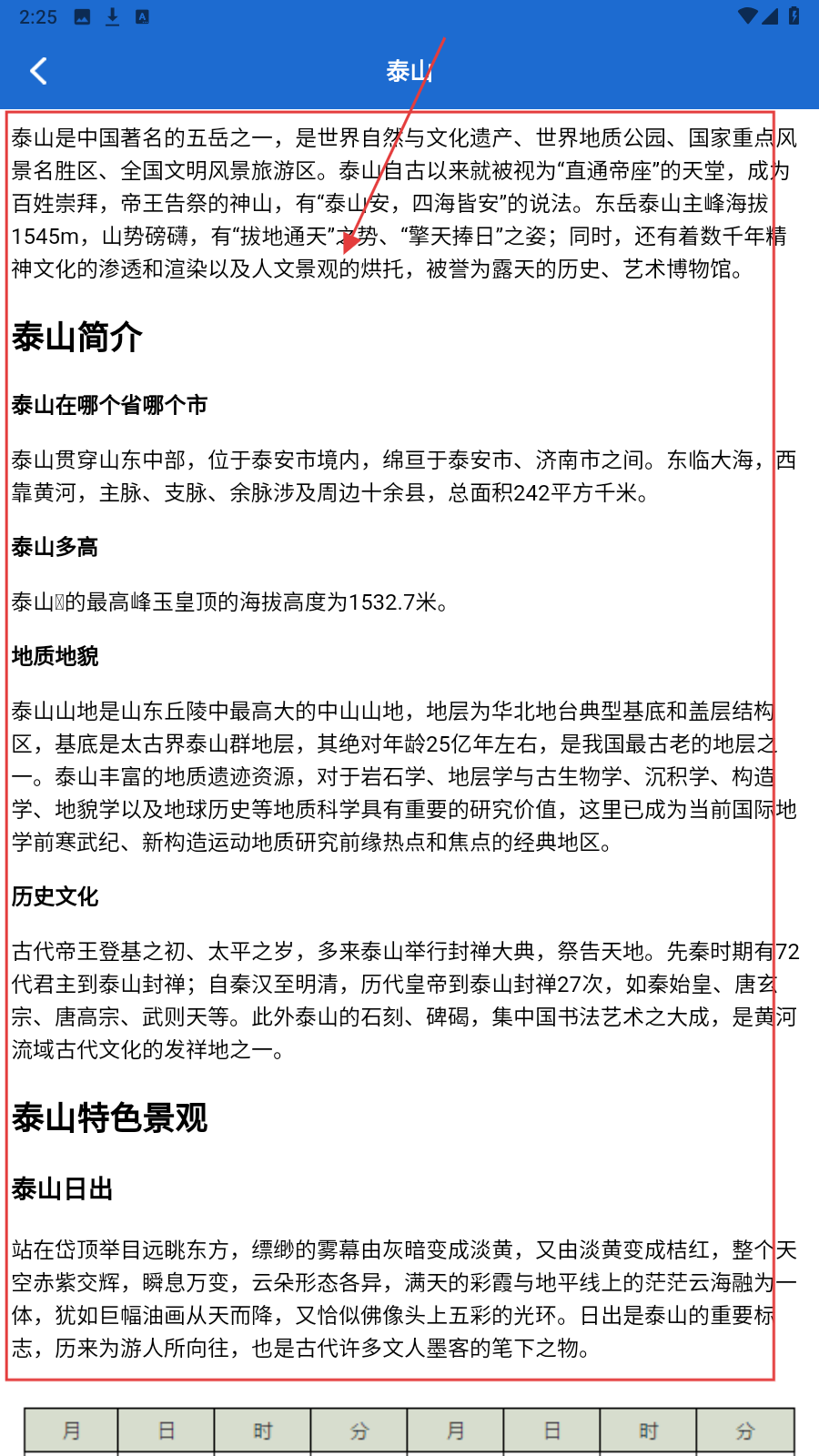 2、想了解泰山,进入泰山介绍页,研读其文化、地理等信息,深度认识景点。