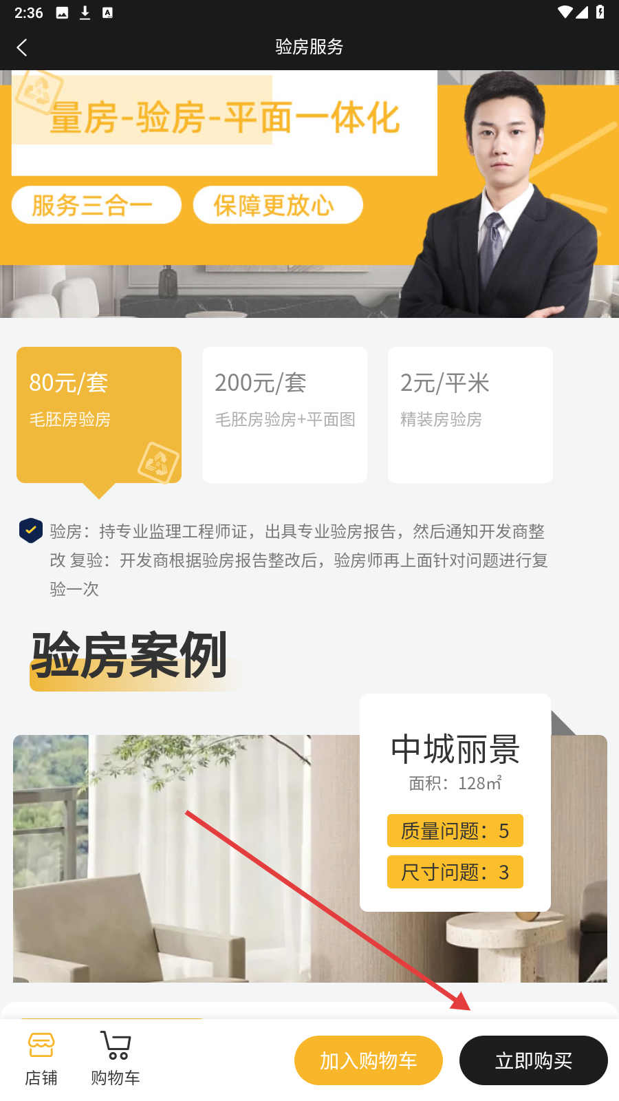 3、若选验房,进入验房服务页,选80元等套餐,点【立即购买】下单。