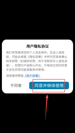 1、阅读《用户隐私协议》,点击“同意并继续使用”以接受条款。