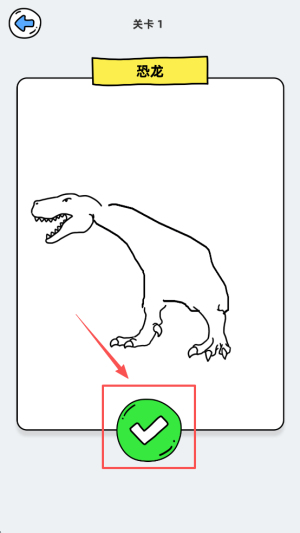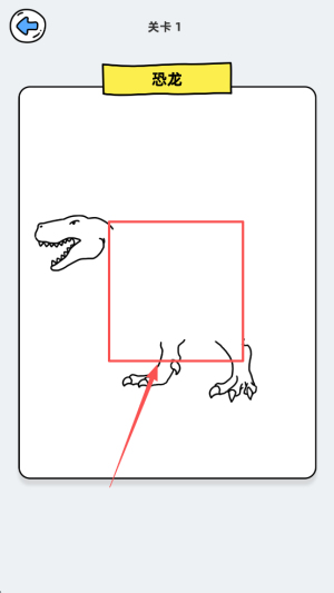 3、在关卡1中,跟随红色框线绘制恐龙。