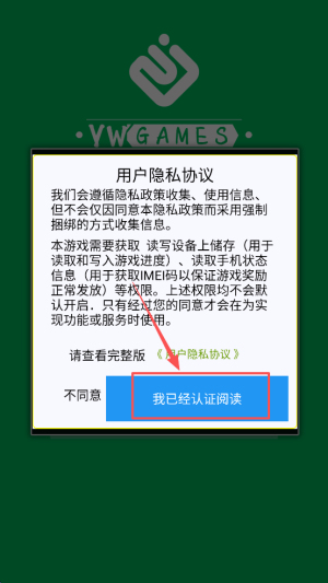 1、阅读并同意《用户隐私协议》,点击“我已经认证阅读”按钮继续。