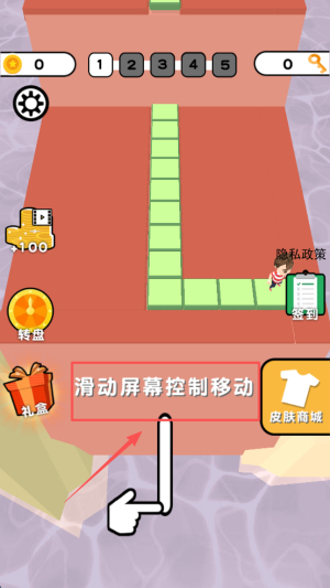 2、在游戏主界面,通过滑动屏幕控制角色移动,避开障碍。