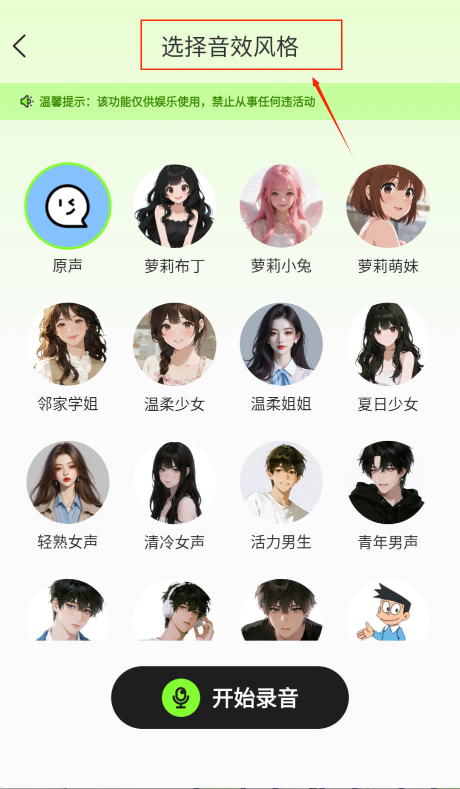 3、内置语音包涵盖影视明星、动漫角色等100多种音效,每月还会根据热点更新10款新音效,比如最近新增了网红音效。