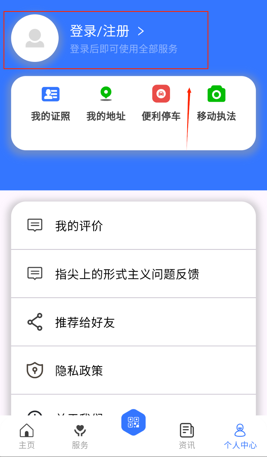1、下载安装后使用手机号注册登录,完善个人信息以便享受个性化服务推荐和业务办理。