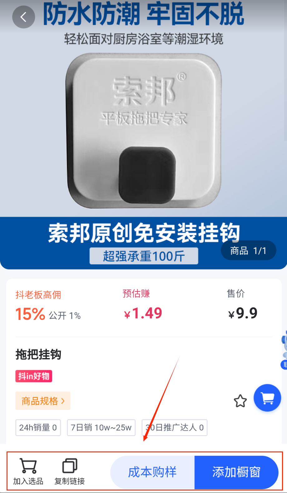 3、选定商品后可以查看详情页的推广素材和文案建议,一键添加到选品列表或直接生成推广链接,方便后续制作内容时使用。