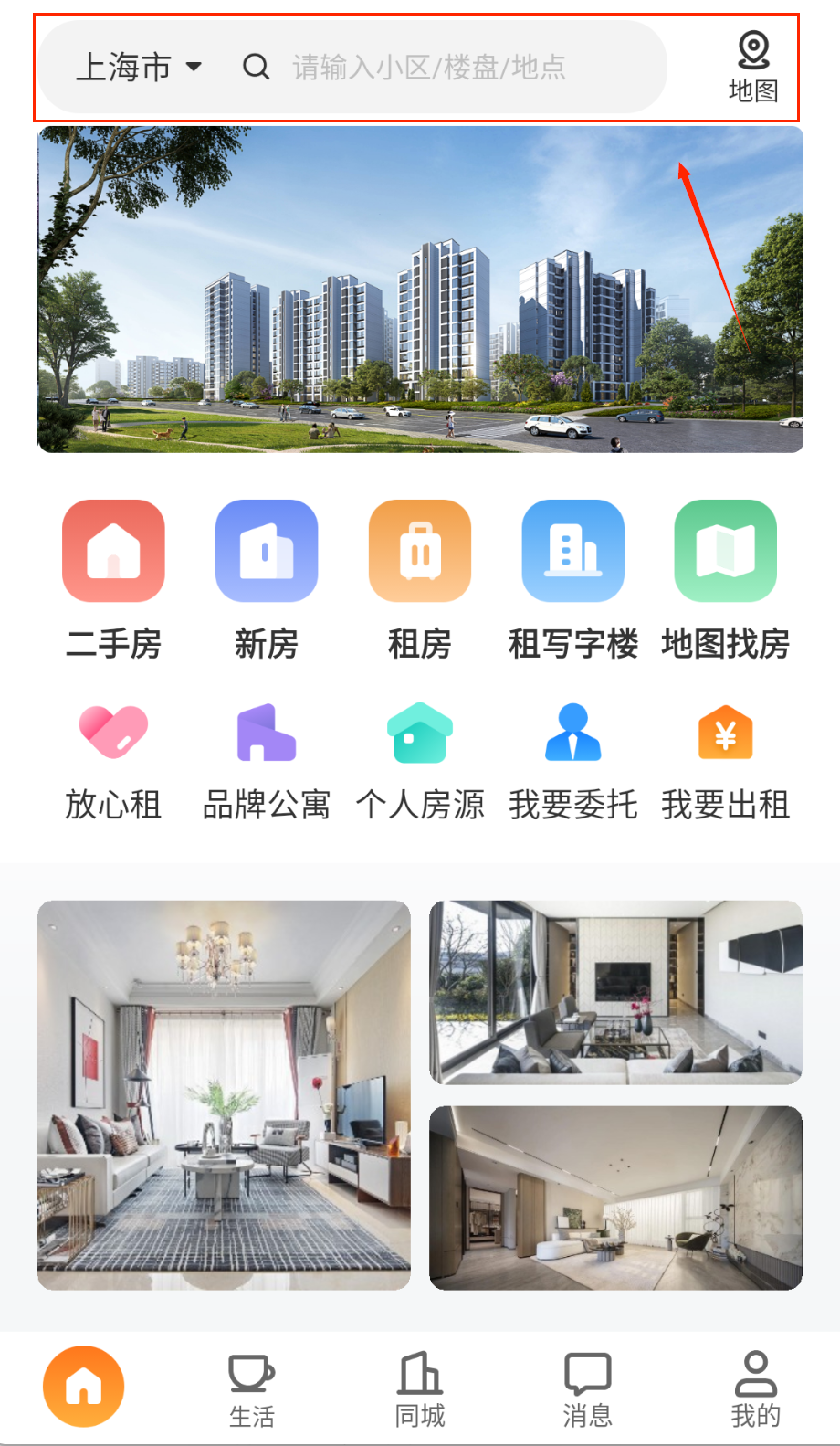 2、智能地图找房功能支持在地图上直观查看房源分布,半径1公里内房源加载速度仅需0.5秒,定位精准度达99%。