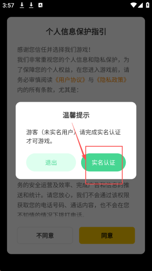 2、在“个人信息保护指引”页面点击“同意”,确认接受用户协议与隐私政策。