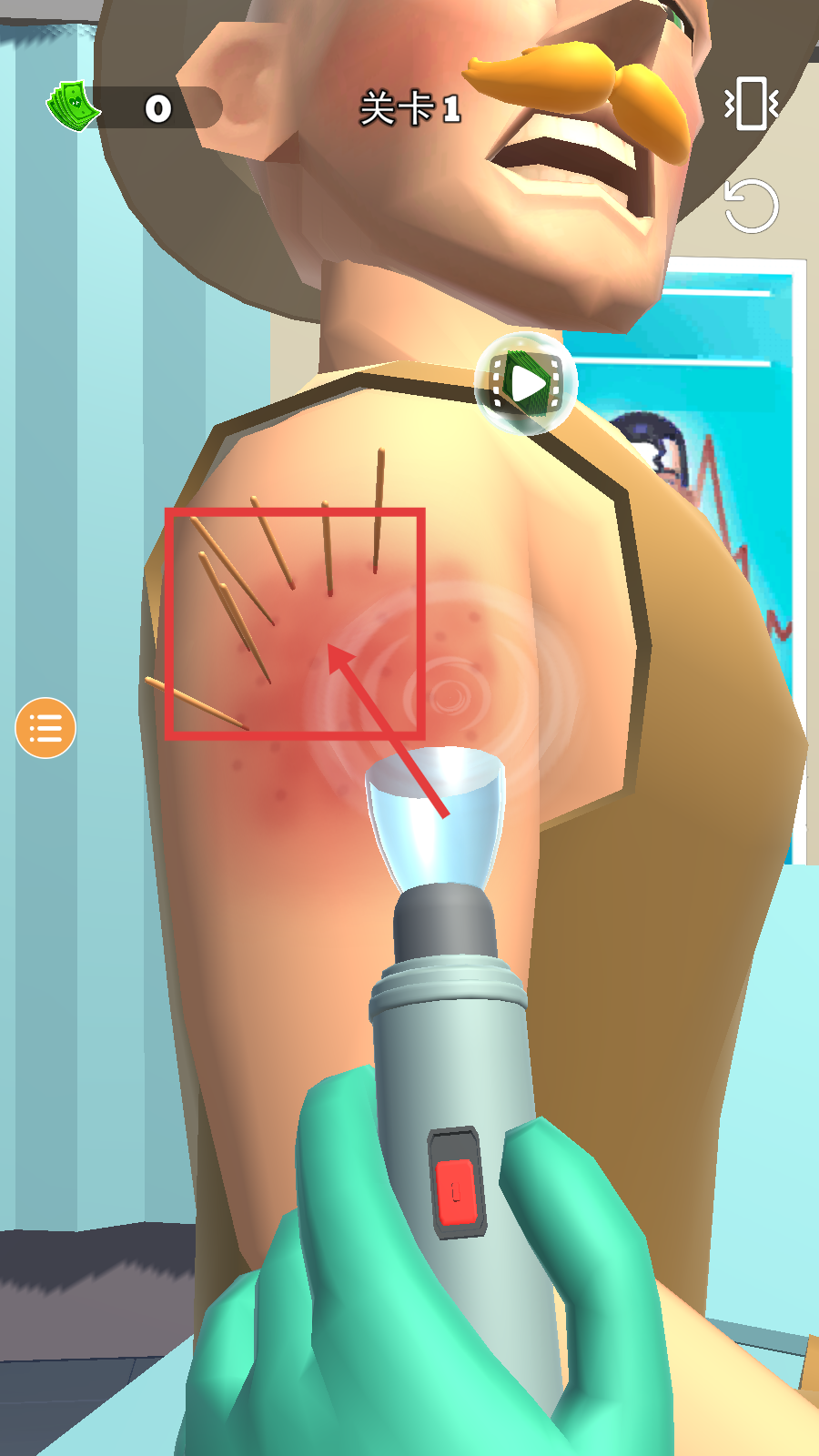 1、关卡1中借助仪器拔除手臂上的刺-精准操作避免伤口受创。