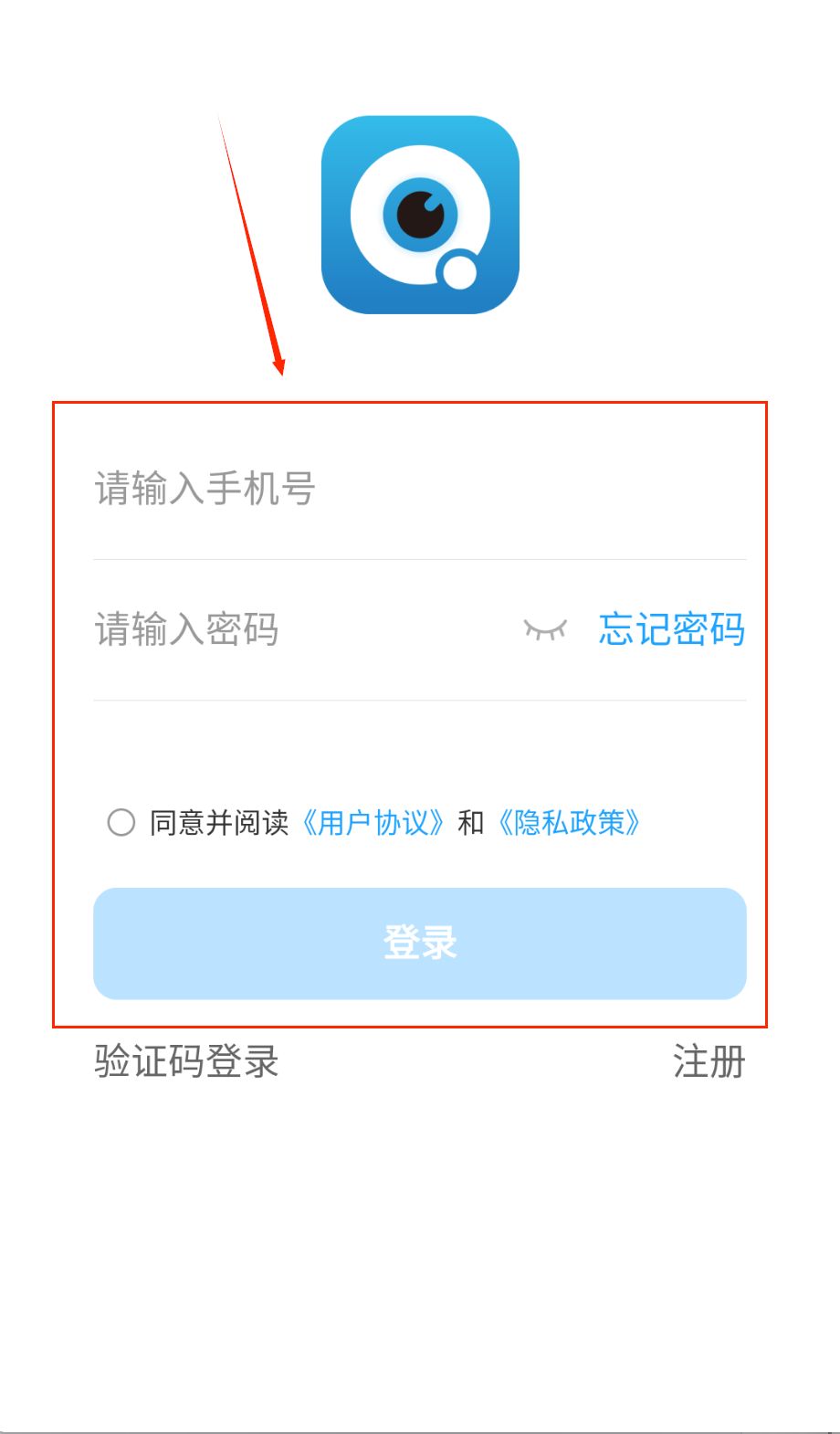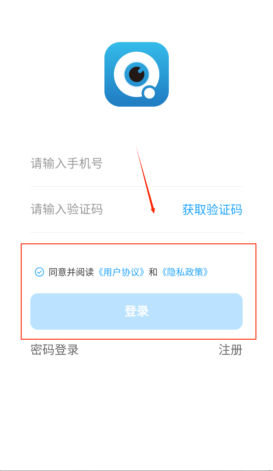 2、在登录页面可以选择验证码登录或密码登录方式,输入手机号和对应验证信息。记得勾选同意用户协议选项哦。