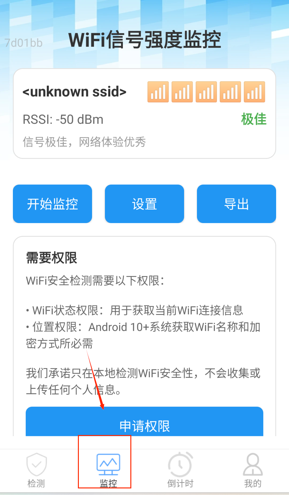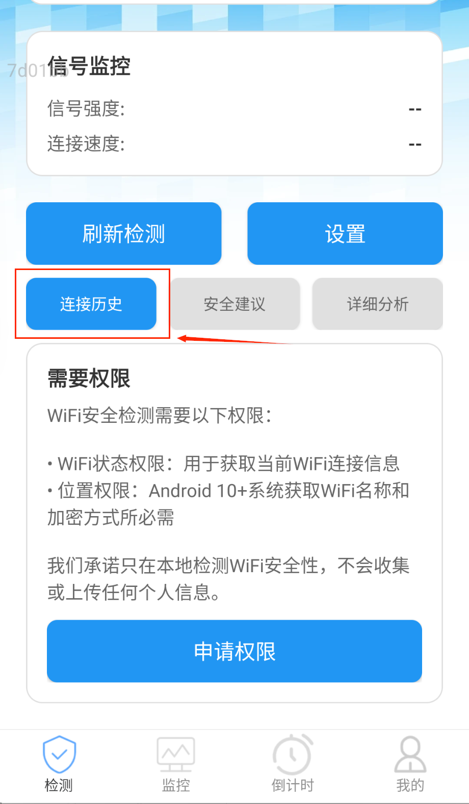 1、首次使用需要在应用商店下载安装APP,打开后授予必要的网络访问权限,系统会自动识别当前连接的WiFi网络并显示基本信息。