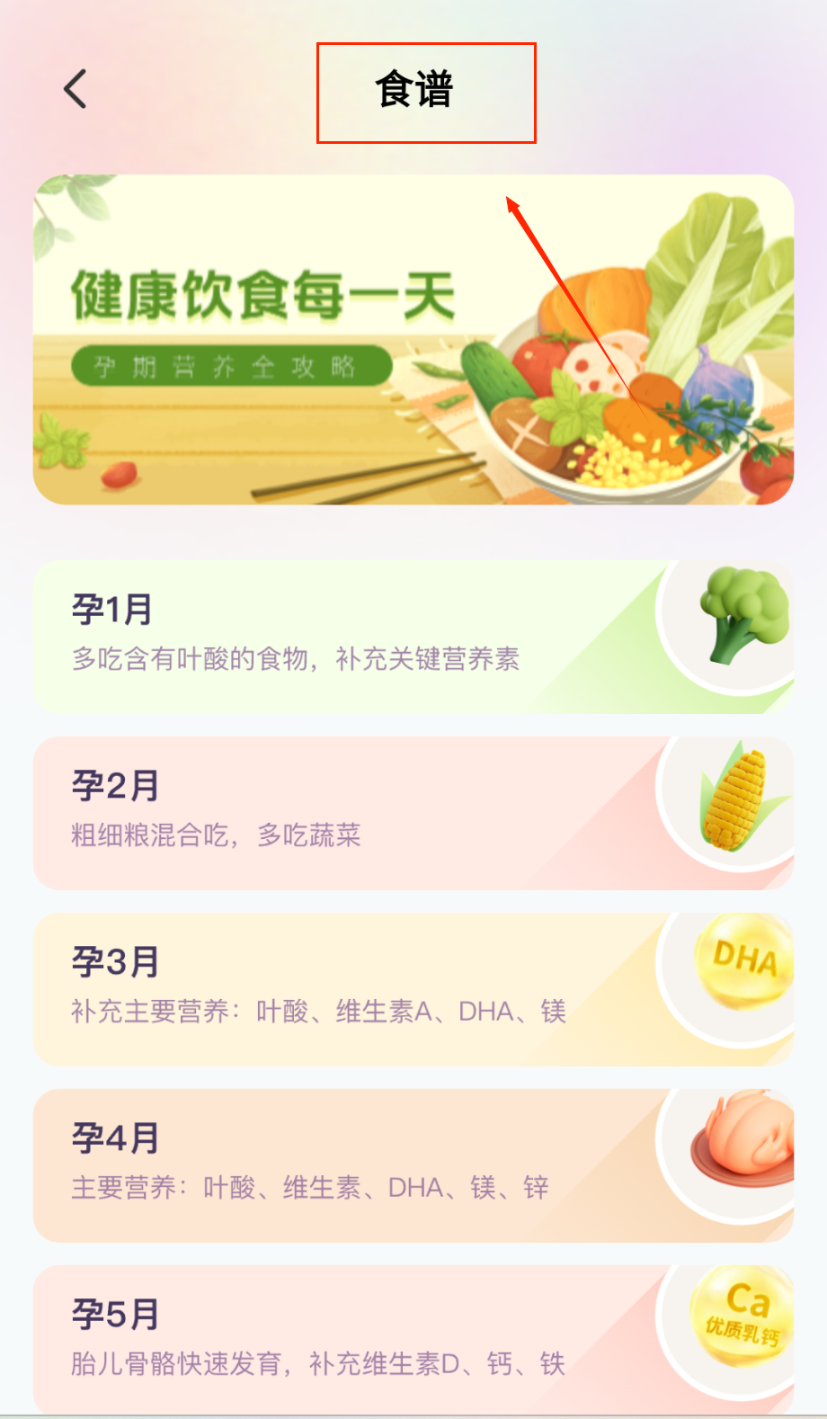 2、营养推荐引擎包含1000多道专业孕期食谱,根据孕周、体质和健康状况智能推荐,精准满足不同阶段的营养需求。