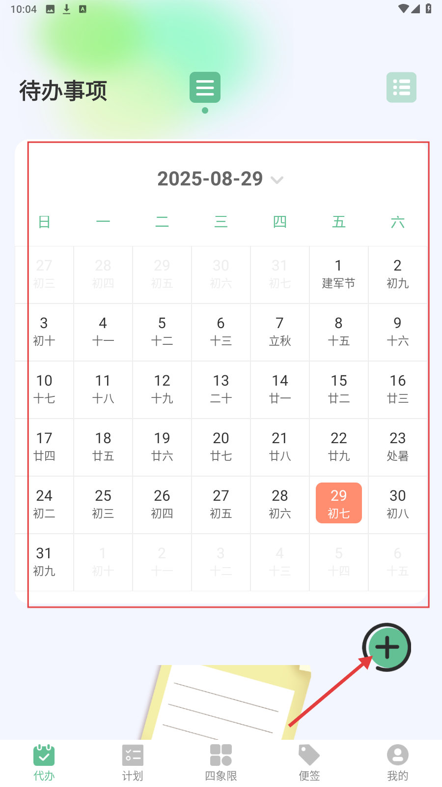 1、在【待办事项】日历页,点右下角【+】,开启待办添加流程。
