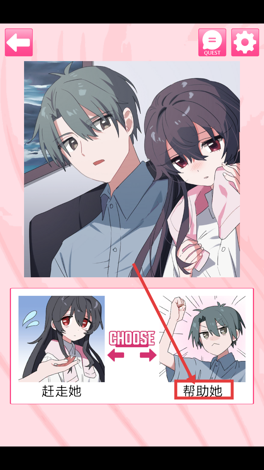 2、在抉择界面,选定【帮助她】选项,触发角色互动剧情,解锁温情故事线的发展。