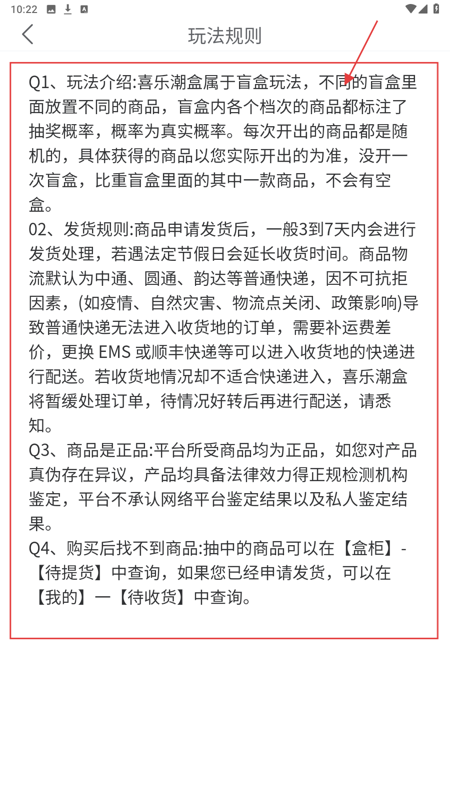 3、进入【玩法规则】,仔细阅读盲盒玩法、发货、正品等规则,避免纠纷。