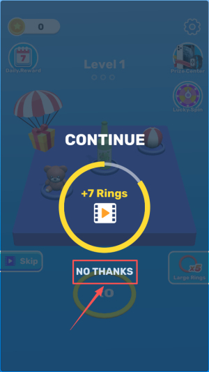 4、选择“CONTINUE”继续游戏或点击“NO THANKS”退出。