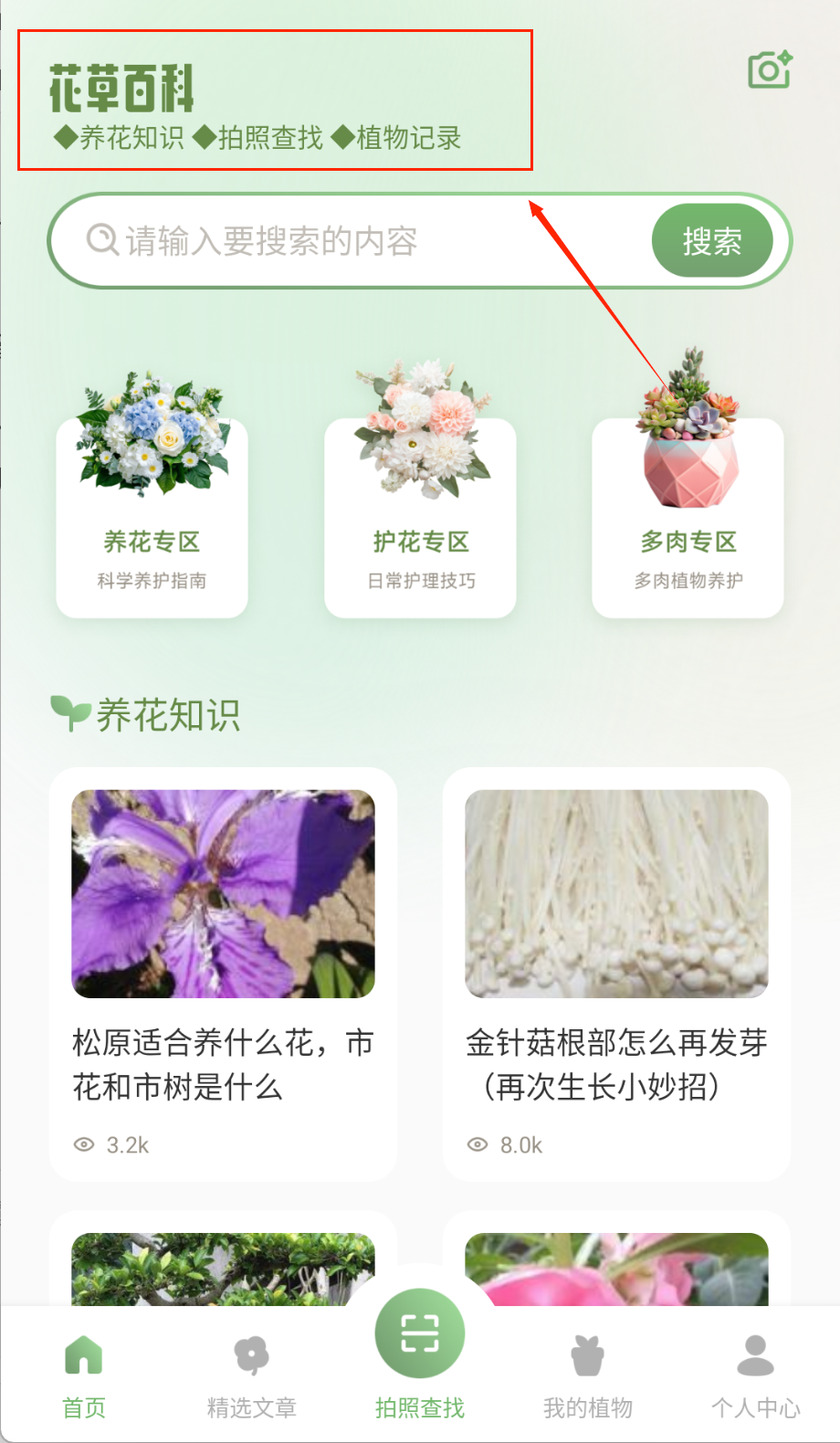 提供花草百科和智能识别功能