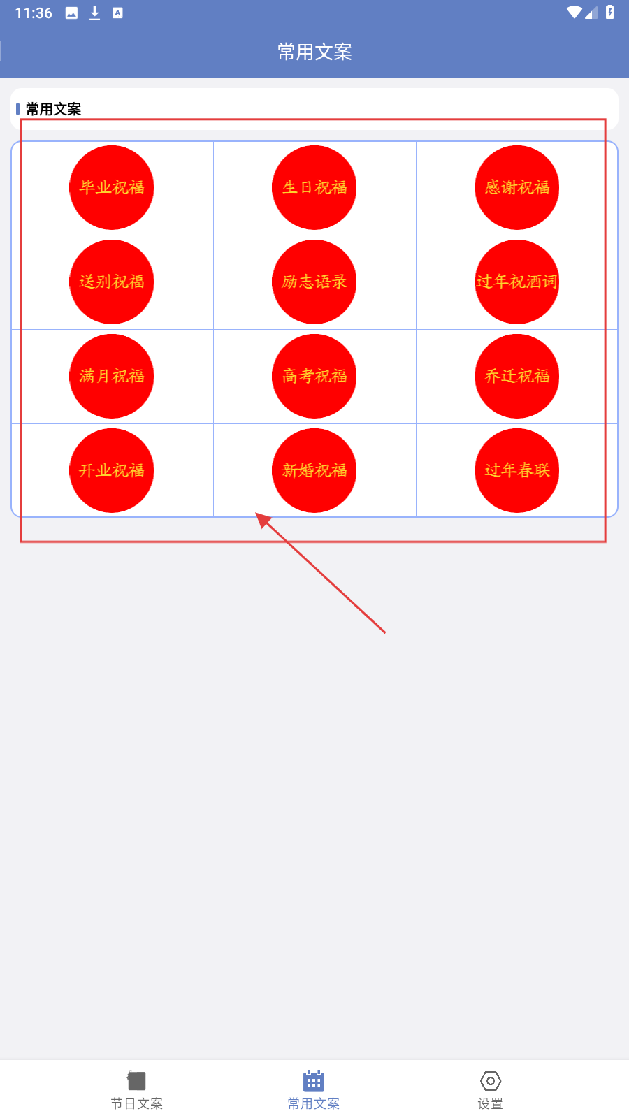 一款专注于节日祝福内容的文案资源应用。