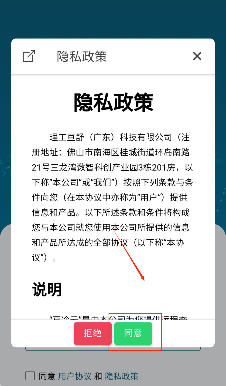 1、打开软件遇到隐私政策弹窗时,仔细阅读条款内容后,点击绿色同意按钮才能正常使用所有功能呢。