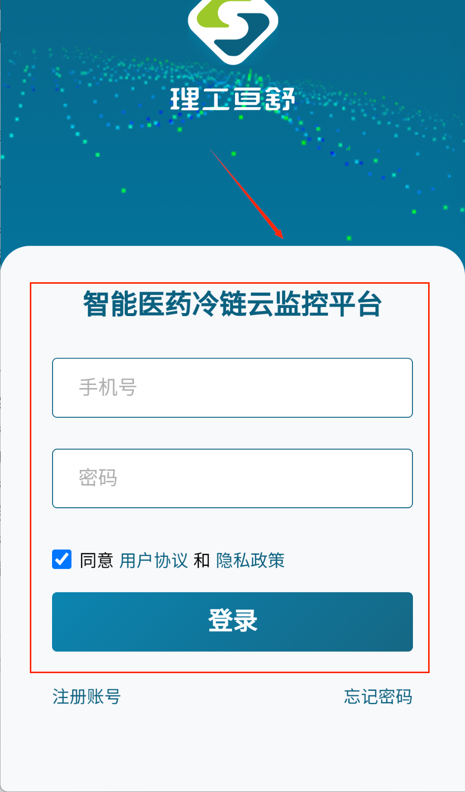 3、登录界面输入手机号和密码后,记得勾选同意用户协议选项,然后点击登录按钮进入平台主页。