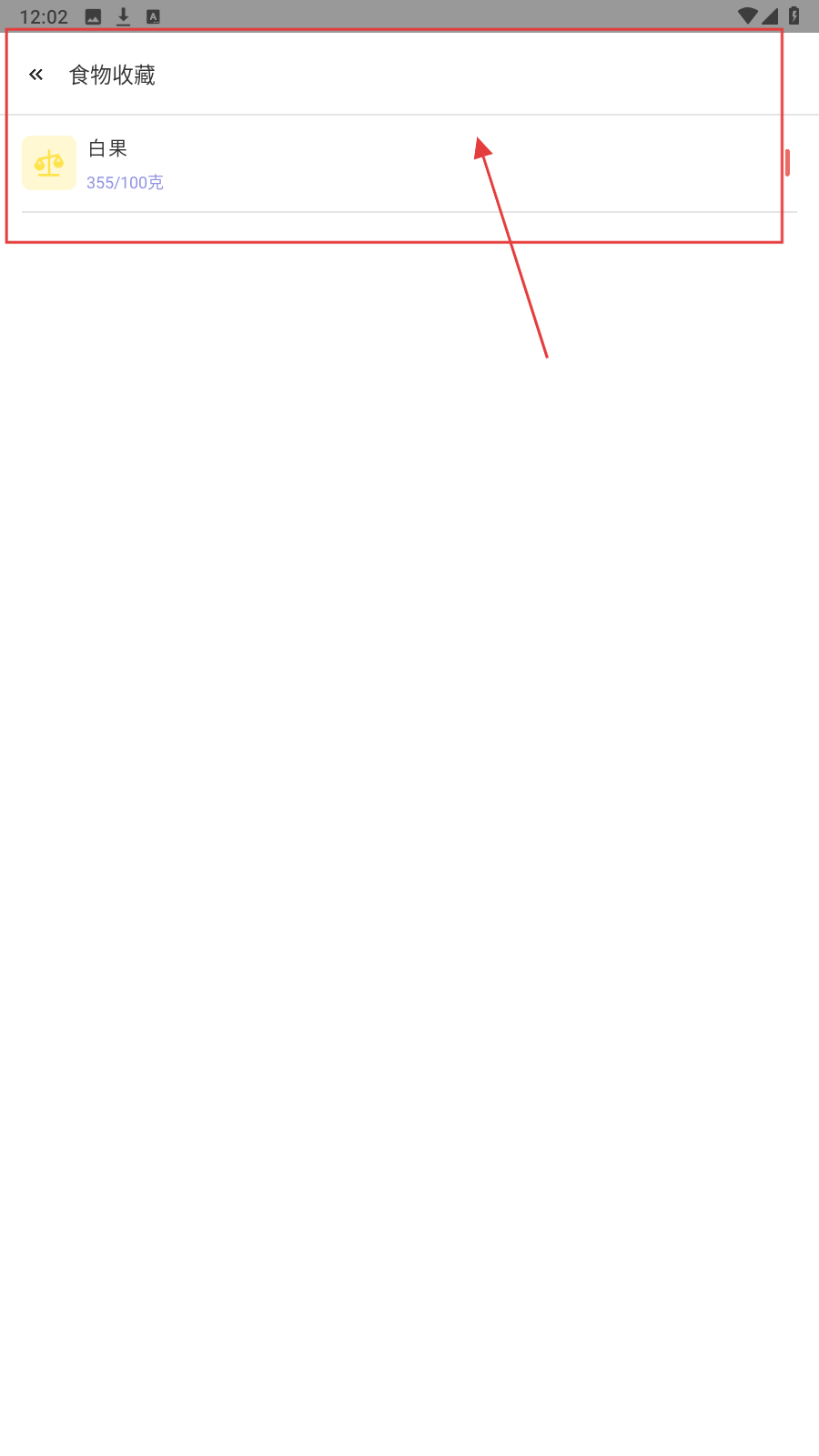 4、切换到【食物收藏】页,查看已收藏食材,如【白果】,便捷管理食谱。