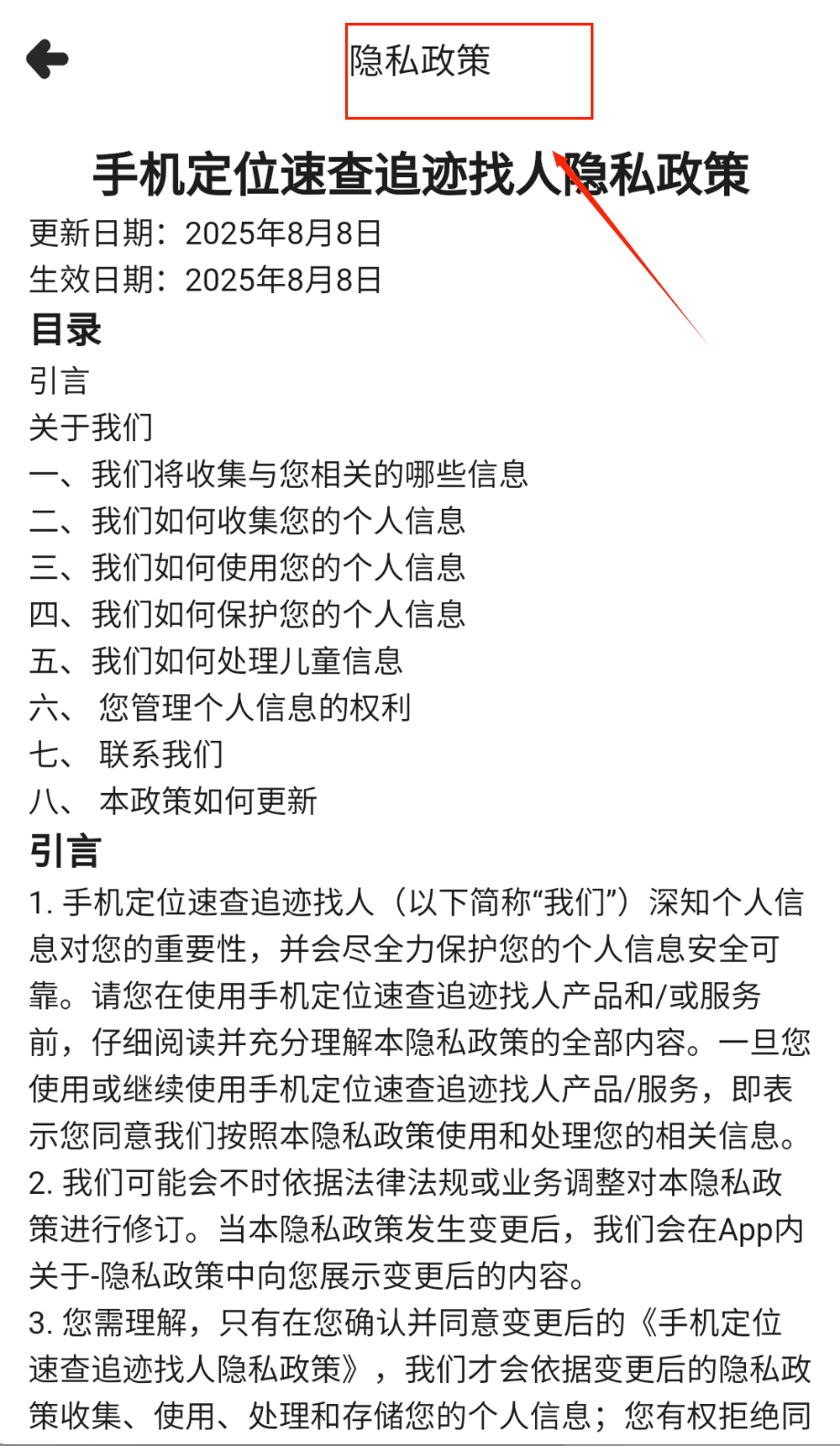 1、打开软件后首先查看隐私政策更新日期和生效日期,通常在隐私政策页面顶部能看到具体时间信息,使用前要仔细阅读政策内容了解信息。