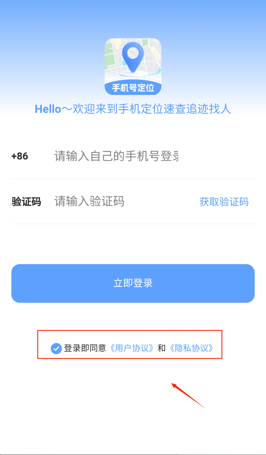 3、登录界面需要输入手机号和验证码信息,手机号栏默认带有+86前缀,验证码通过点击获取验证码按钮接收,填写完整后点击立即登录。