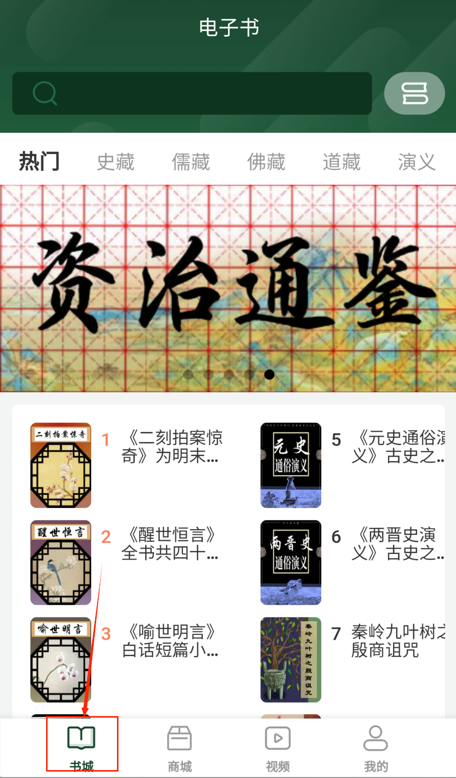 1、下载安装后使用手机号完成注册登录流程,进入书城界面可以浏览首页推荐的热门书目,或者按照经史子集等传统分类方式查找。