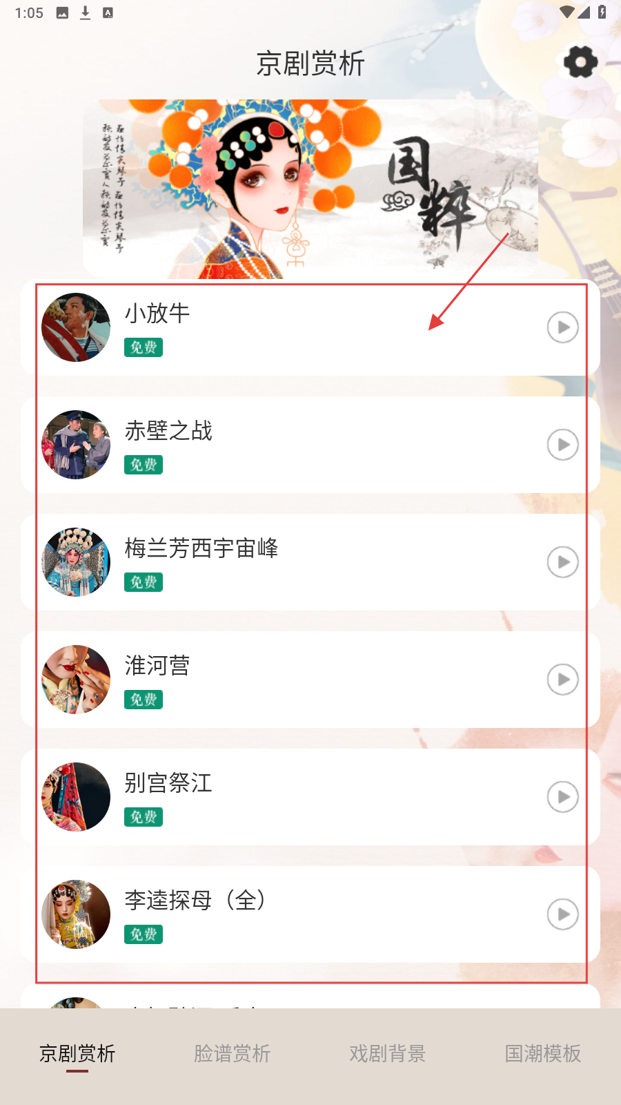 1、进入京剧赏析页,选【小放牛】等剧目,点播放键,聆听京剧音频。