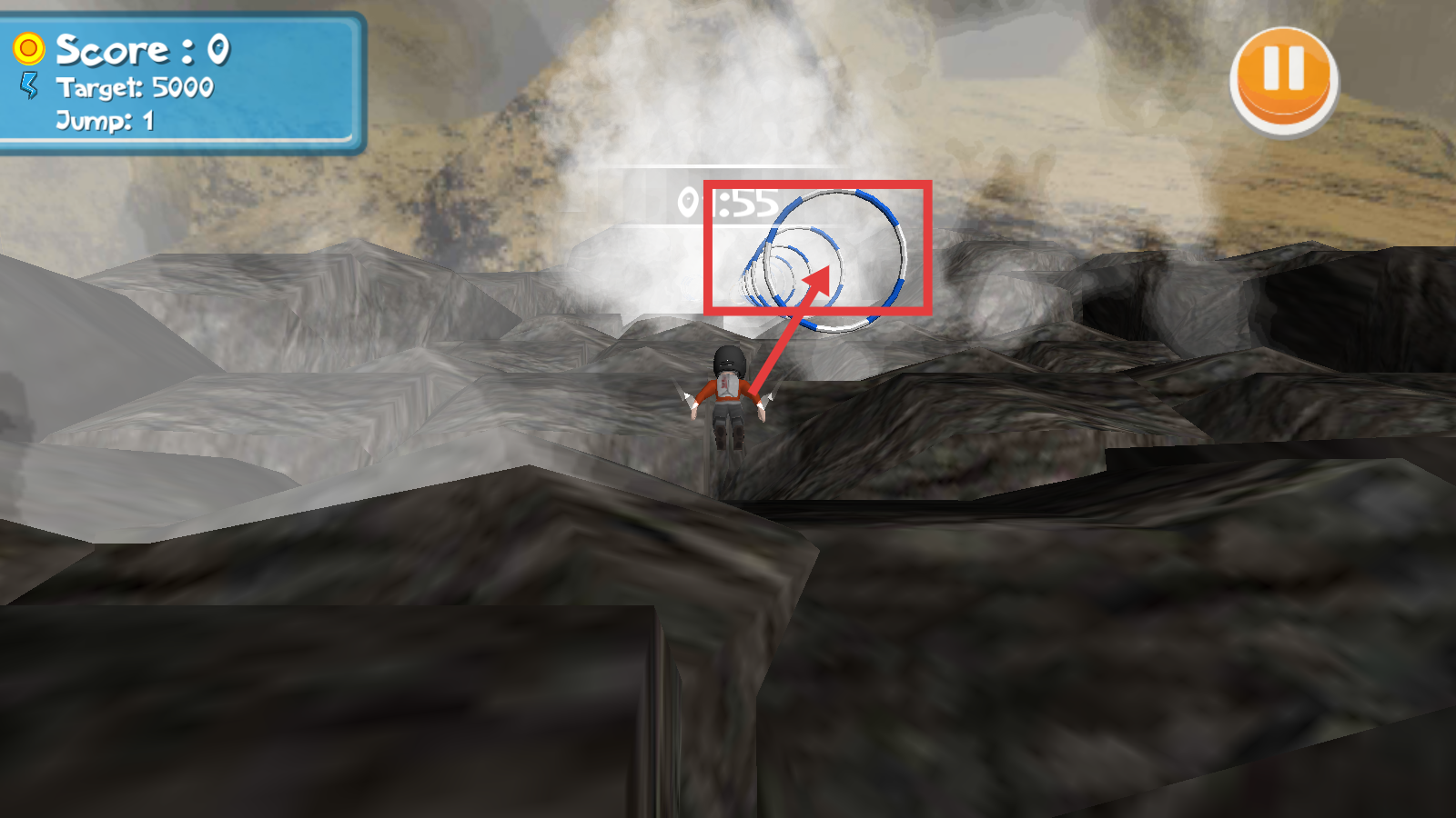 3、挑战中紧盯角色前方【蓝色圆环】目标,通过倾斜设备控制移动,努力精准抵达以积累分数。