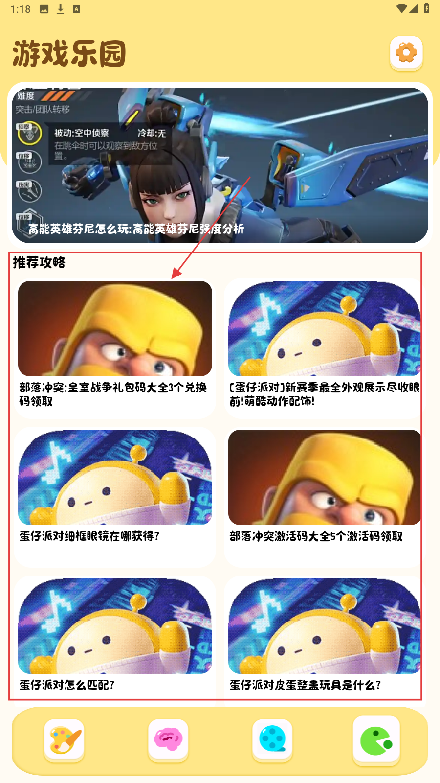 3、切换到游戏乐园,选【部落冲突皇室战争礼包码】攻略,查看内容。