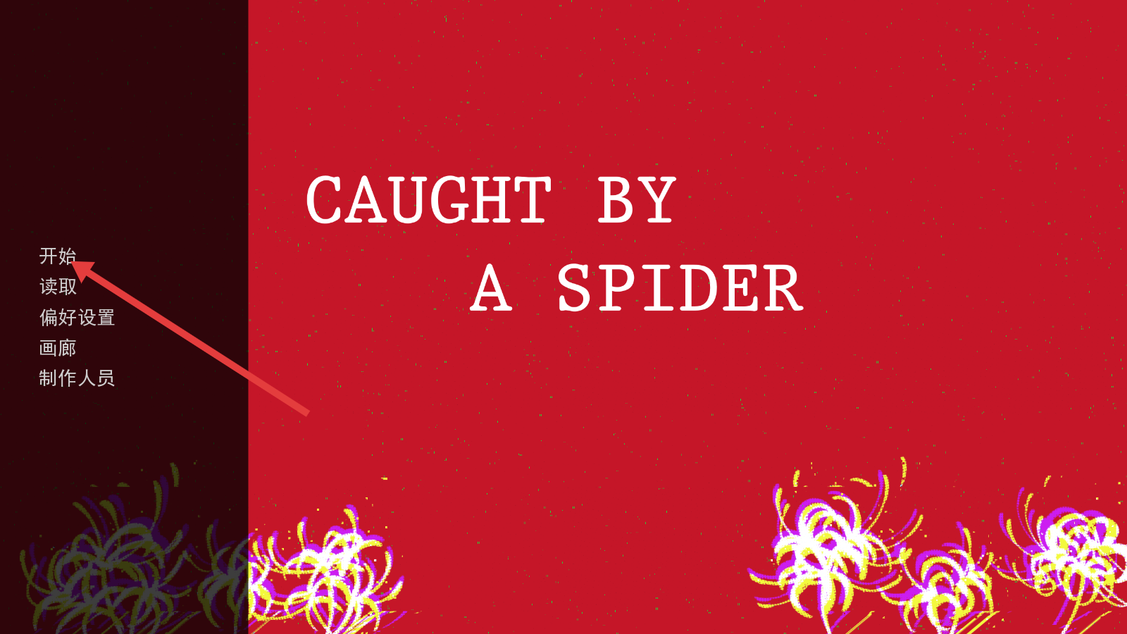 1、进入游戏,点击左侧【开始】选项,开启【CAUGHT-BY-A-SPIDER】的剧情冒险之旅。