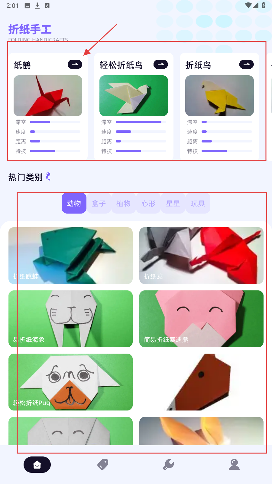 1、分类清晰详尽:将折纸作品按动物、植物等细致分类,每个类别下再按难度等级排序,方便用户根据兴趣和能力选择合适的学习内容。