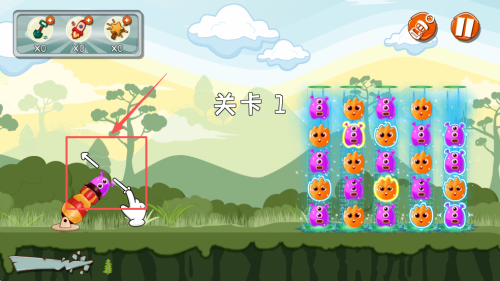 2、瞄准规划炮击:观察萌兽分布,瞄准目标区域调整炮击方向,规划如何让炮击后萌兽凑齐三个及以上同色,为消除做准备。