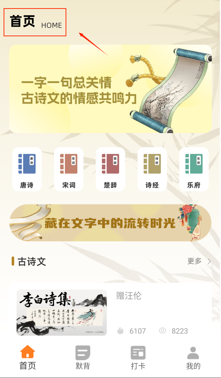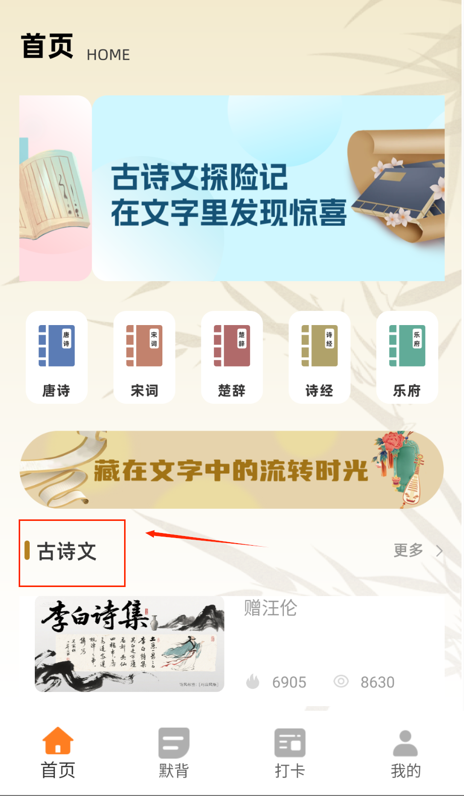 2、在诗词学习模块查看详细注解和赏析,通过朗读和默写功能巩固记忆,收藏重点篇目方便复习。