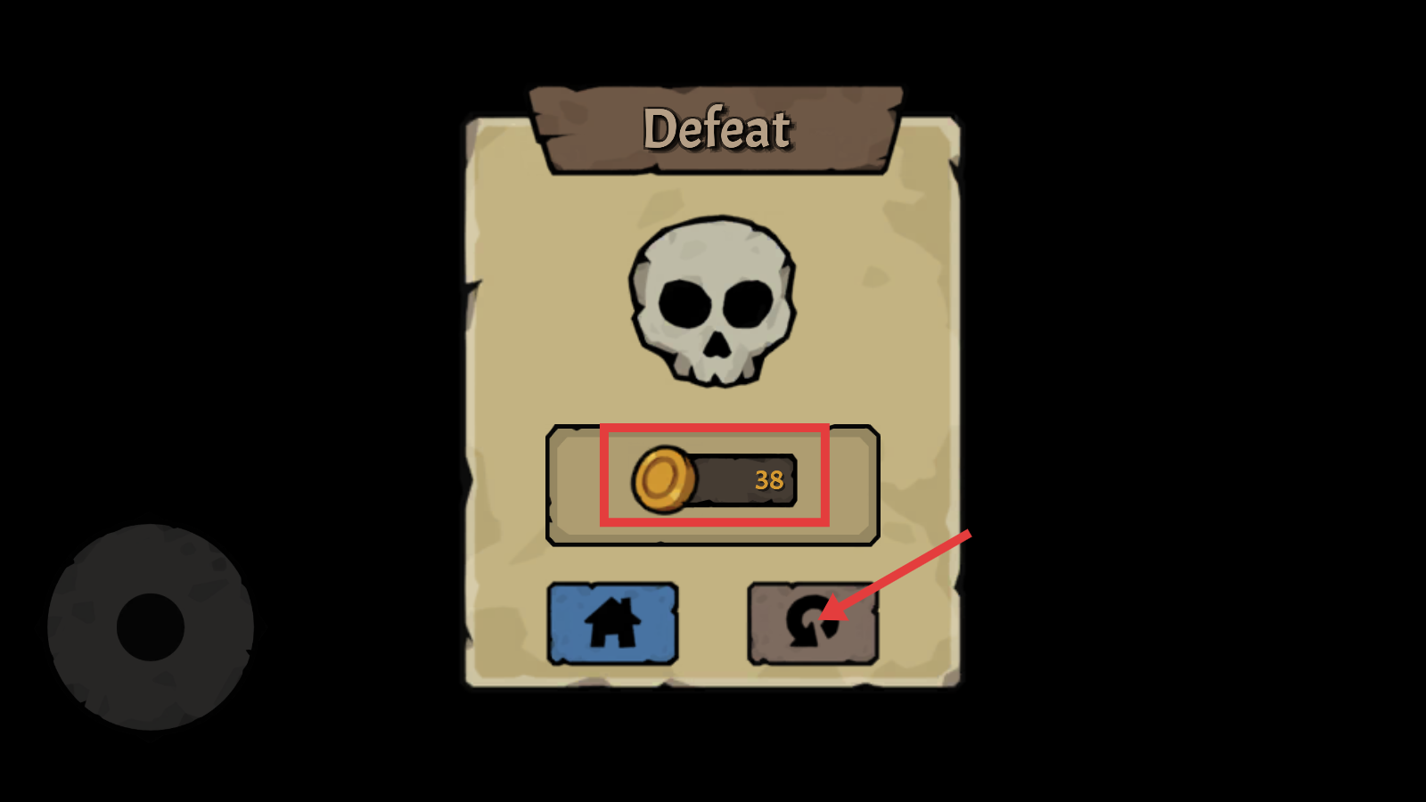 4、若战斗失败,记录获得【38金币】,点击重玩按钮重试,复盘失误提升战斗表现。