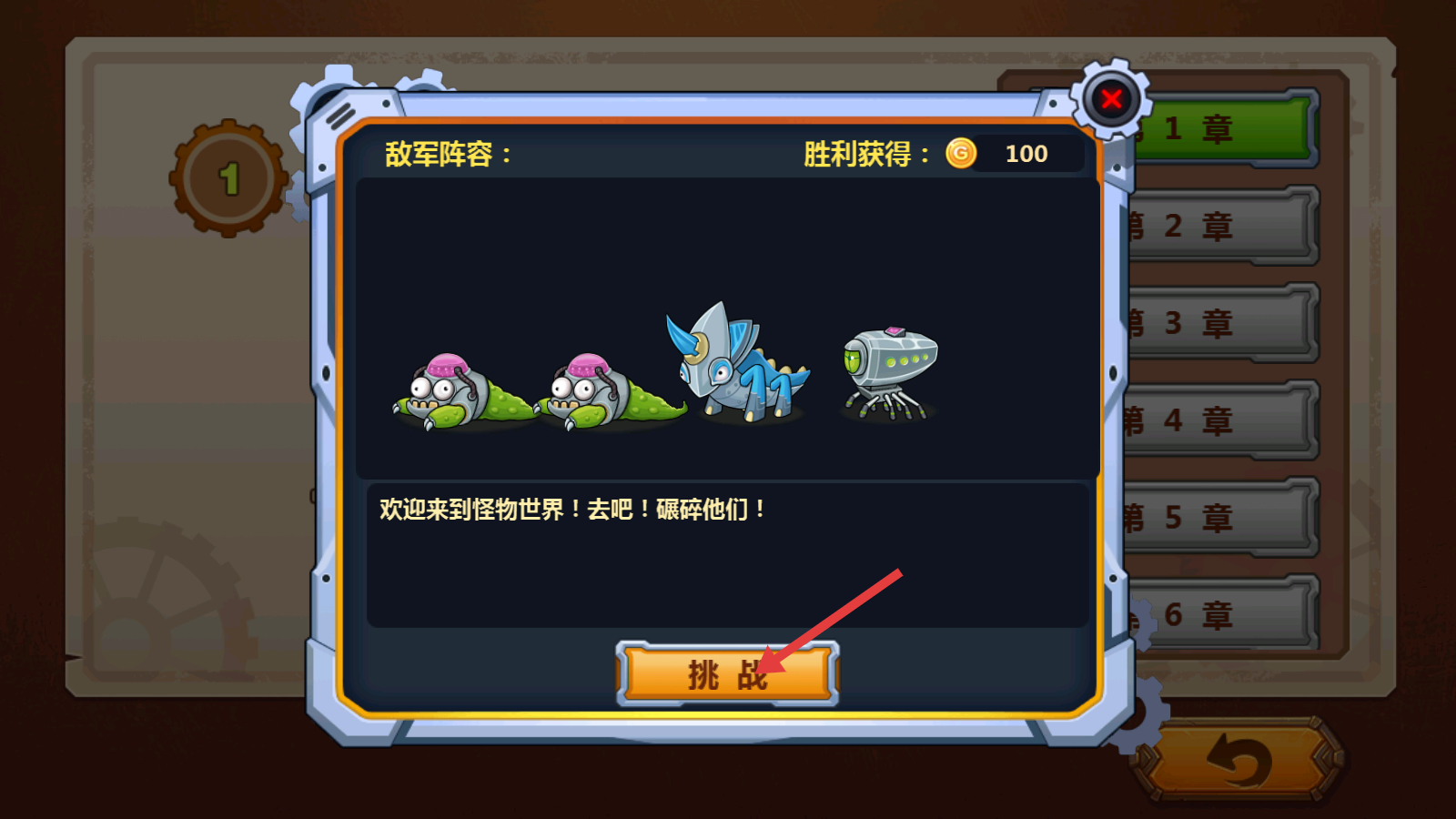1、看到敌军阵容后,点击【挑战】按钮开启战斗,可依据敌方怪物信息提前规划策略。