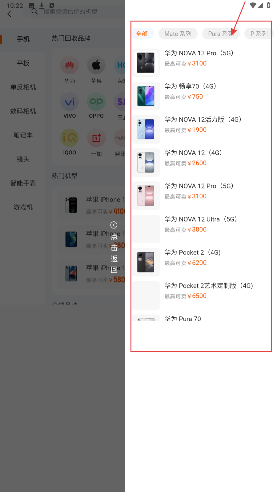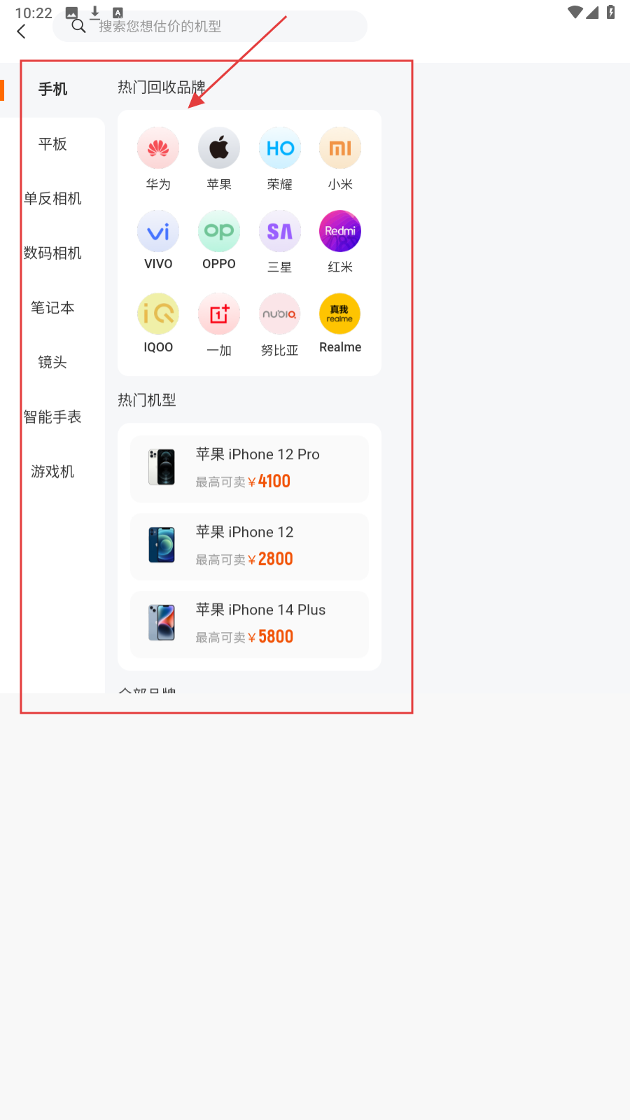 2、在手机回收页,从华为、苹果等热门品牌里,选具体想回收的品牌,查看热门机型及报价。