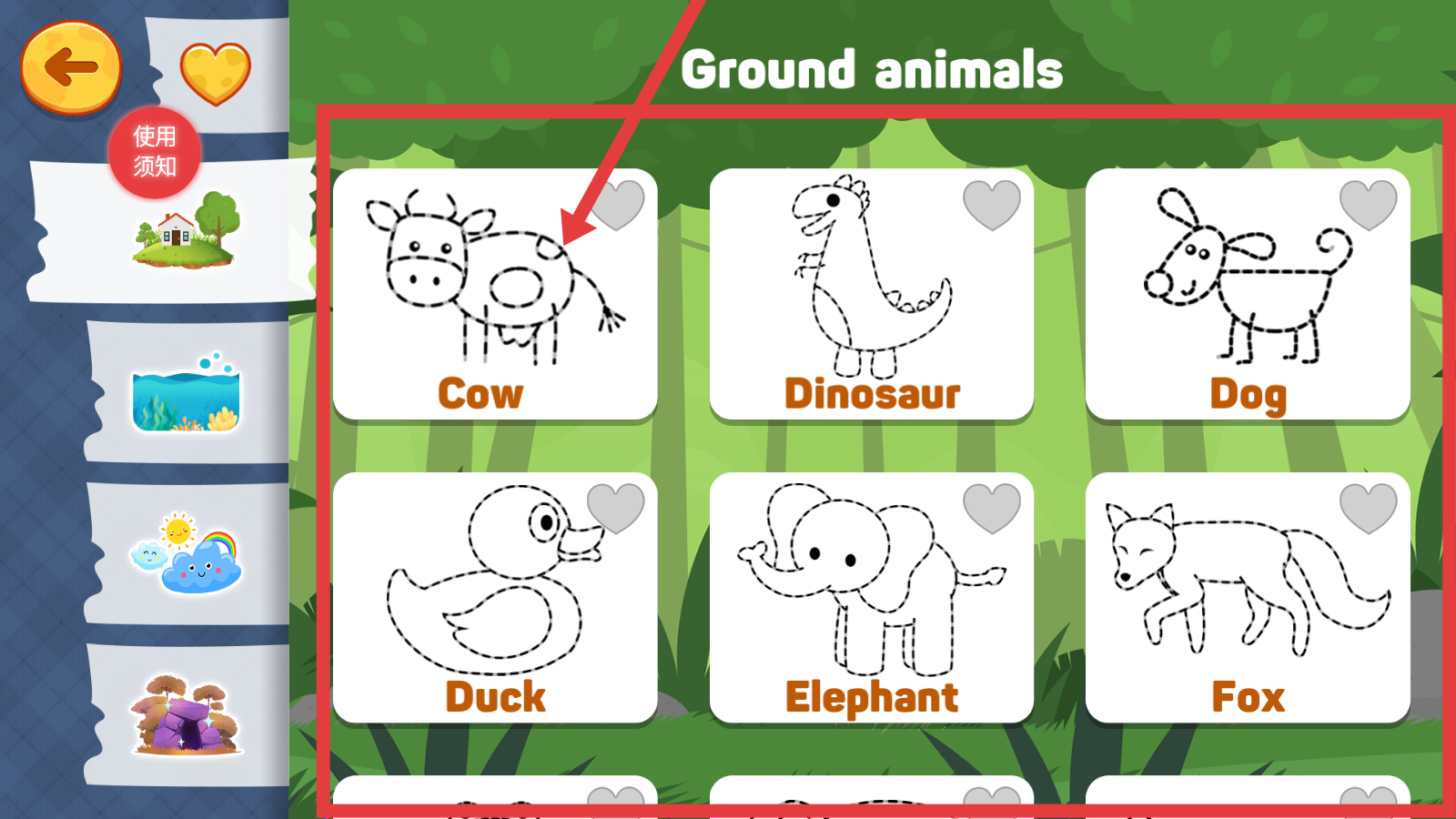 3、在分类页,从【Ground-animals】分类里,挑选【Cow】【Dinosaur】等心仪动物图案。