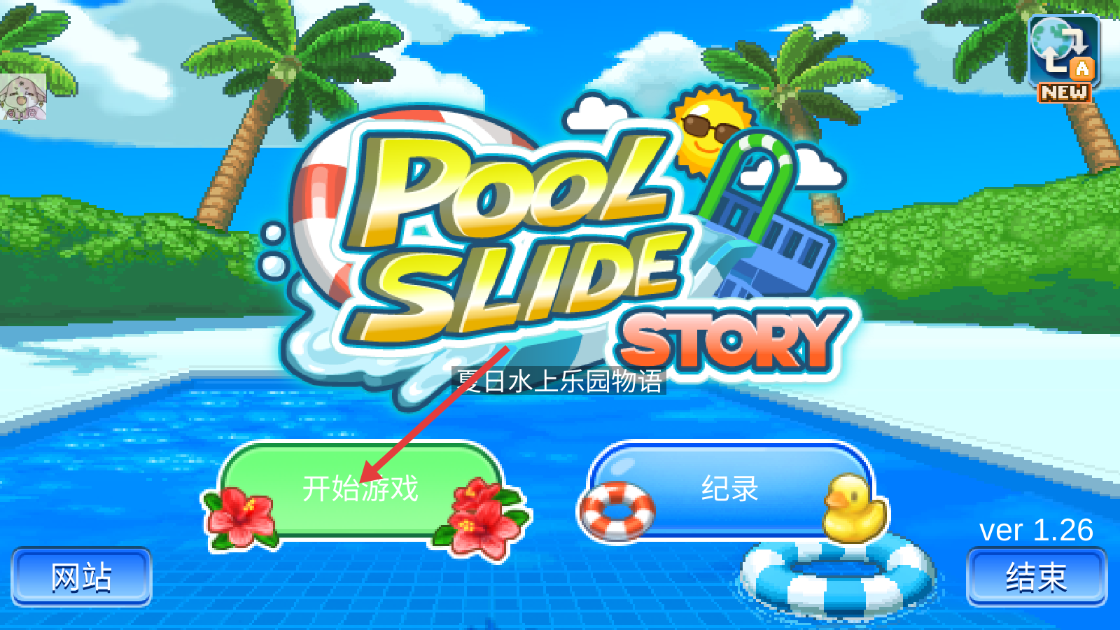 1、进入【Pool-Slide-Story】(夏日水上乐园物语)后,点击【开始游戏】,开启水上乐园的建设之旅。