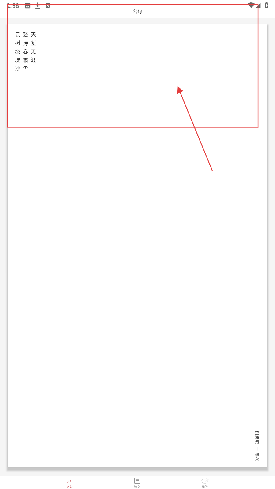 1、进入应用,先在【名句】板块欣赏诗词名句,感受诗词的语言魅力。