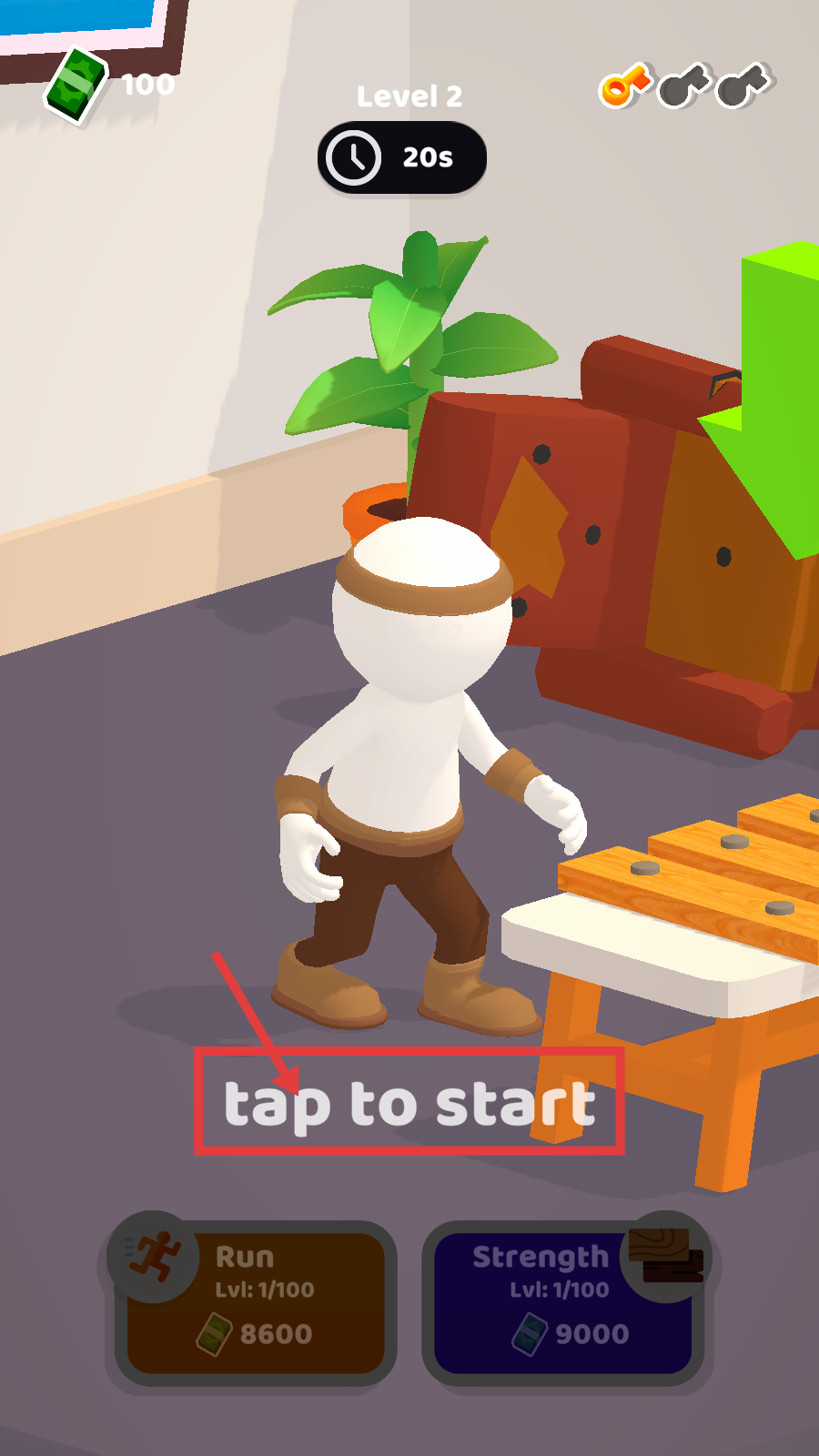 1、Level-2开始,点击【tap-to-start】,开启20秒限时的生存挑战,准备应对关卡内的任务。