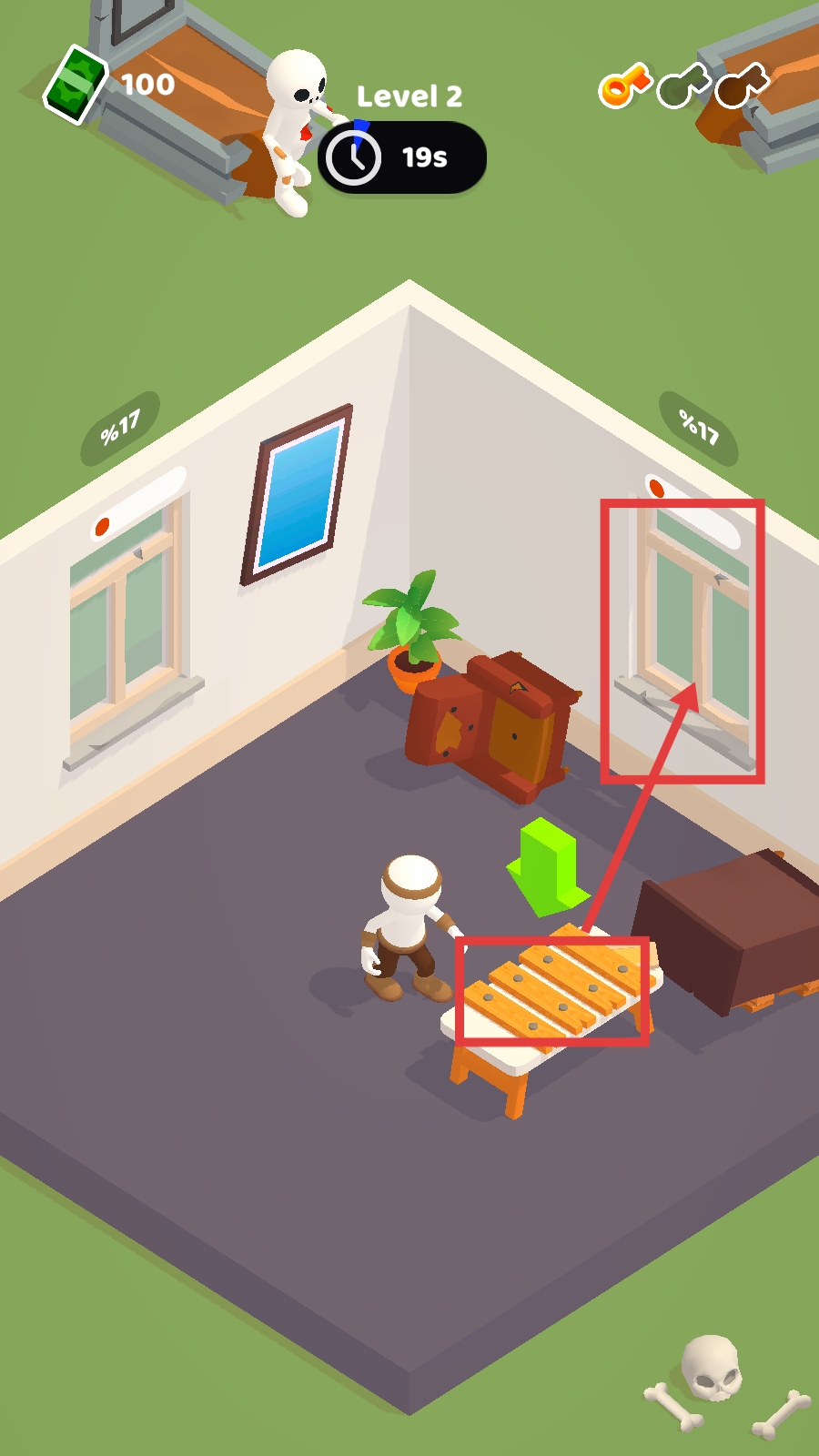2、在场景中,将木板类道具移动到窗户位置,通过道具与窗户的互动,推进关卡进程。
