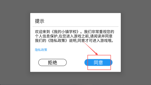 1、阅读隐私提示,点击“同意”进入游戏。