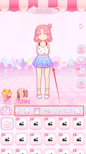4、在“设置形象”界面,点击裙子图标更换服装。