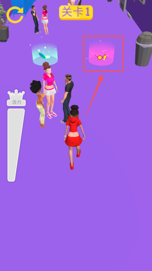 2、躲避陷阱收道具:在关卡中避开红色光柱(陷阱),主动收集青色光柱中的道具,同步积累时髦衣服,提升自身颜值。