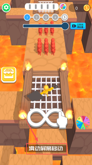 1、滑动屏幕移动,引导角色避开障碍。